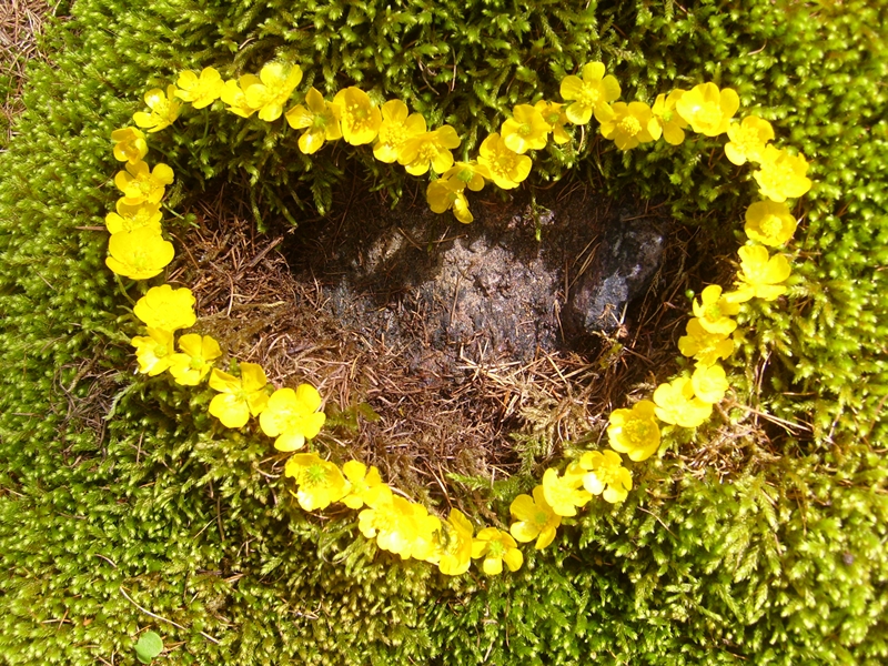 Yellow Heart (close) - Yellow flowers and moss on a rock