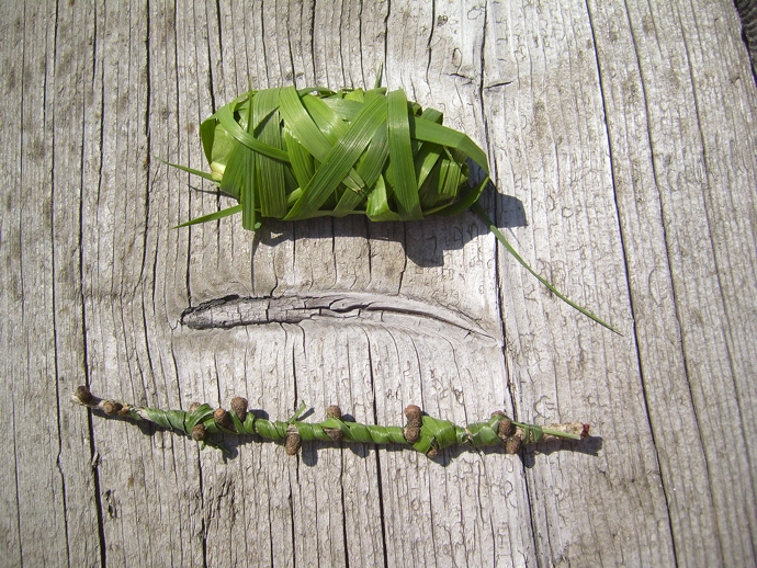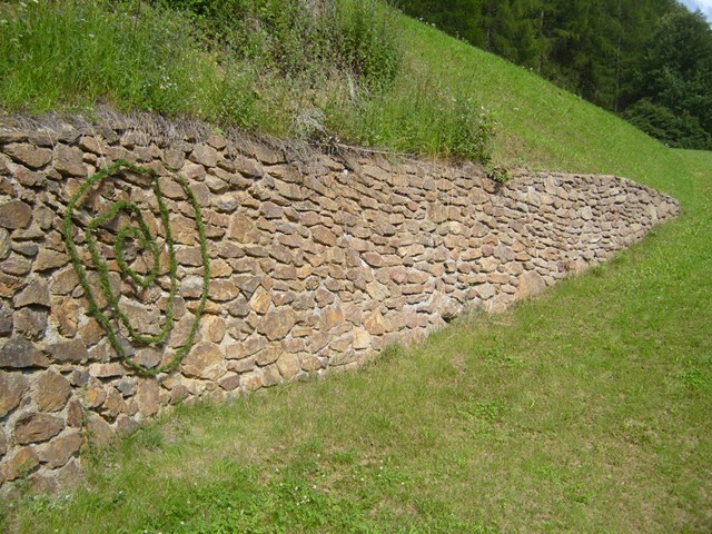Sprial on stone wall (8m garland woven of small cedar branches)