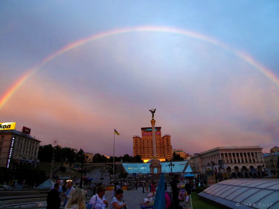 Looking at the hotel and a stunning rainbow over the Maidan, Kiev