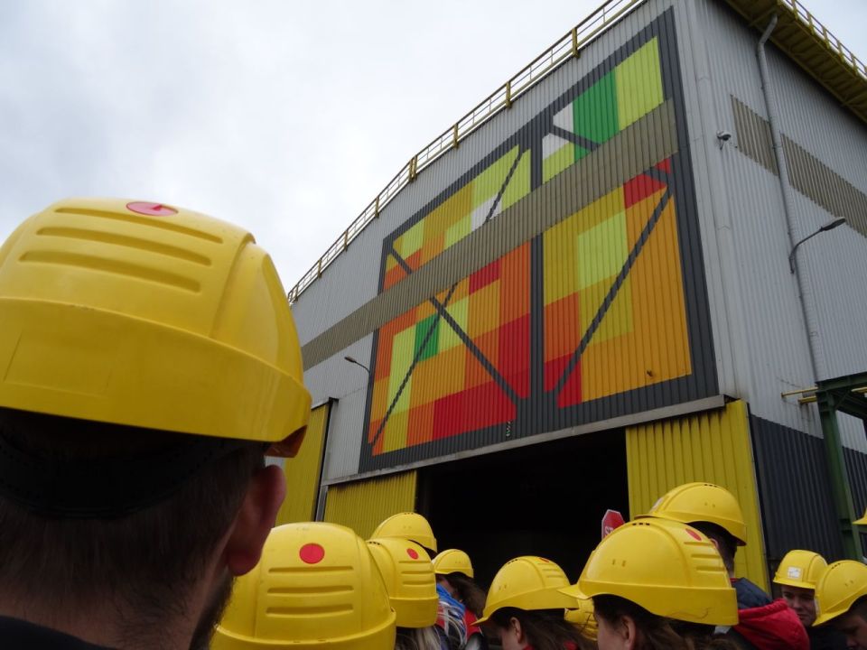 DSC02079 ← Previous Next → Visit to the Interpipe Steel factory, which has several commissioned artworks by Olafur Eliasson. This mural is one of them.