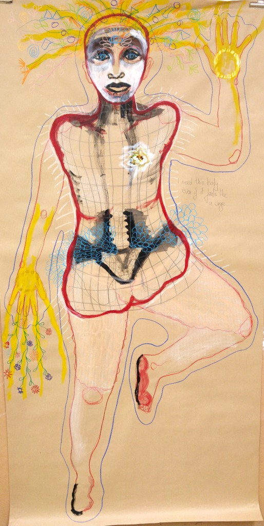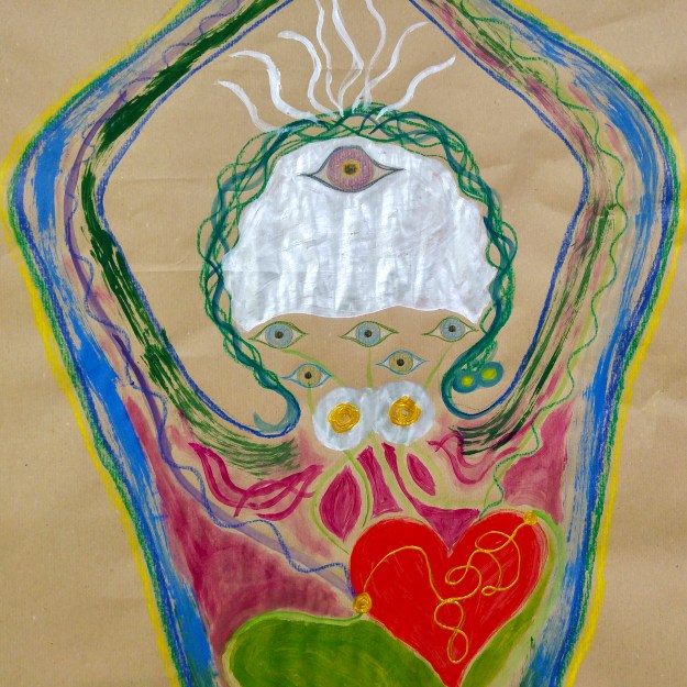 Angelehnt an das Prinzip von Body Mapping (das in den 90er-Jahren in Südafrika als Selbsthilfe für Frauen mit HIV/Aids entwickelt wurde), Äthiopische Heilrollen und verschiedene Mythologien und antikem Wissen aus der ganzen Welt habe ich (Imke Rust, bildende Künstlerin) den Körper-Bild-Landschaften Workshop konzipiert.