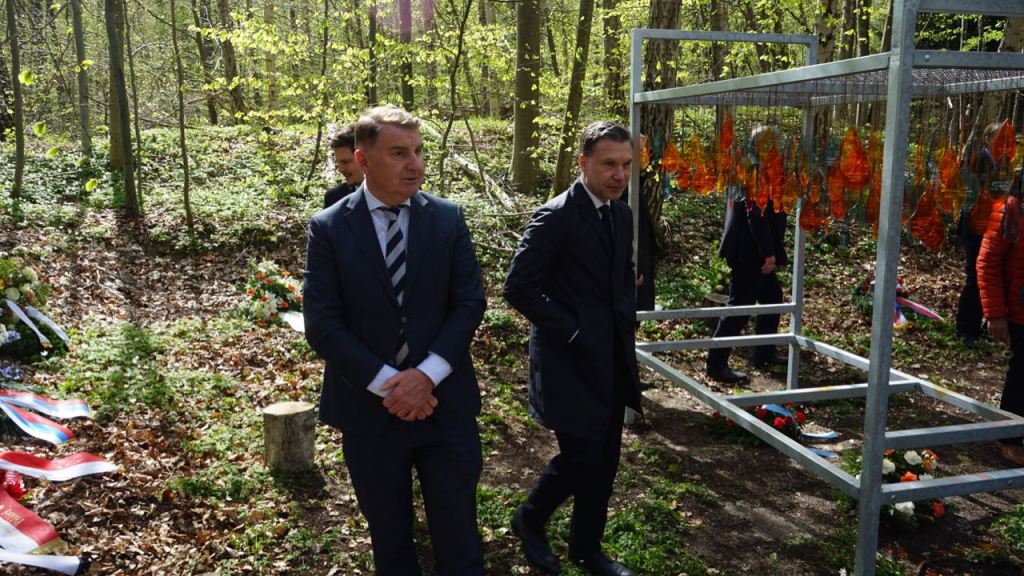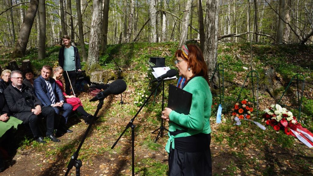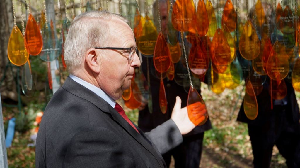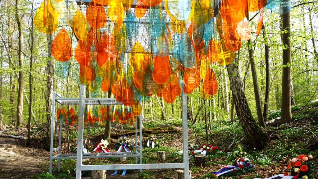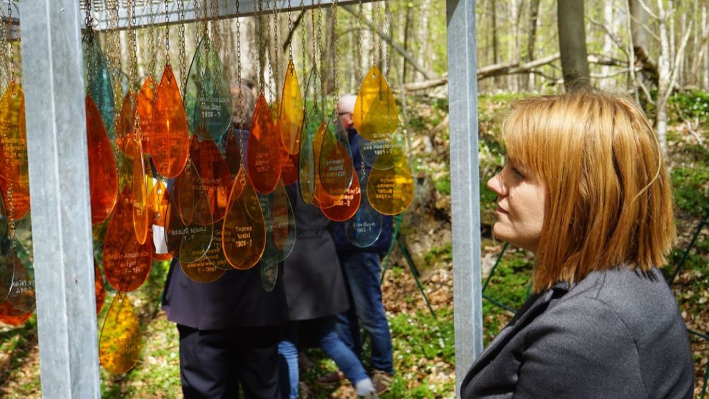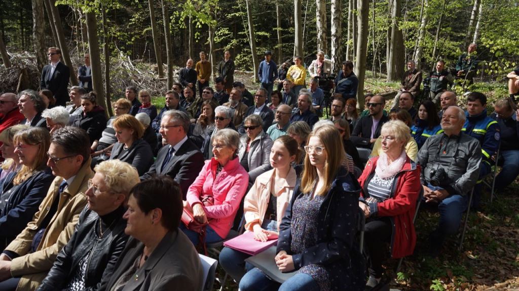 On the occasion of the anniversary, the mayor of Neubrandenburg Silvio Witt and the managing director of RAA M-V Christian Utpatel invited to a ceremonial act of remembrance in Waldbau on 29 April, which was attended by Franc But, ambassador of the Republic of Slovenia and representatives of the embassies of Poland, the Czech Republic and Slovakia. With their presence, the diplomatic representatives underlined the significance of the site as a place of remembrance that unites nations and occupies a justified and important place in the European context of remembrance of the Second World War. Other guests such as the Minister of Agriculture and Forestry Dr. Till Backhaus, the head of the Mecklenburg Lake District Thomas Müller and the director of the State Centre for Political Education MV Jochen Schmidt inaugurated the installation of name drops by the artist Imke Rust.