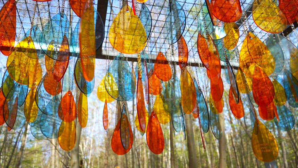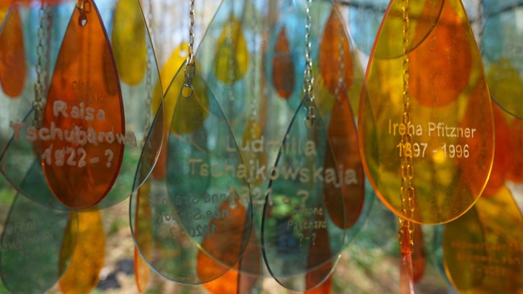 The installation on the grounds of the former camp makes visible the names of 500 women so far who were systematically exploited as concentration camp prisoners in the camps of Neubrandenburg and in some cases had to do forced labour for the armaments industry based here until their death. Over the past two years, young people and interested adults from Neubrandenburg and the surrounding area engraved the names of some of the 1,500 women on the drop-shaped plexiglass plates, either from home or in joint workshops. Researchers Nadja Grintzewitsch (Managing Director of the Dr. Hildegard Hansche Foundation), Dr. Harry Schultz and Tino Kammerer, under the direction of Eleonore Wolf (City Archives NB) and Dr. Constanze Jaiser, researched the names and compiled them in a database. The installation shows the extent of the crimes committed by the National Socialists in Neubrandenburg and underlines their impact on the lives of women. With the name drops, the German-Namibian artist has enabled an individual and intergenerational remembrance of the women and has already created a multitude of occasions for a joint activating remembrance and a regional search for traces.
