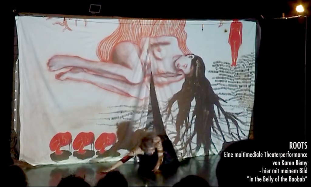 Ebenfalls in diesem thematischen Feld wurden Arbeiten von mir als Projektionen in der Theaterperformance ROOTS von Karen Rémy integriert. Es freut mich, dass sie Arbeiten aus meiner Roots & Branches Serie ihr Bühnenbild auf spannende Weise verdichteten.