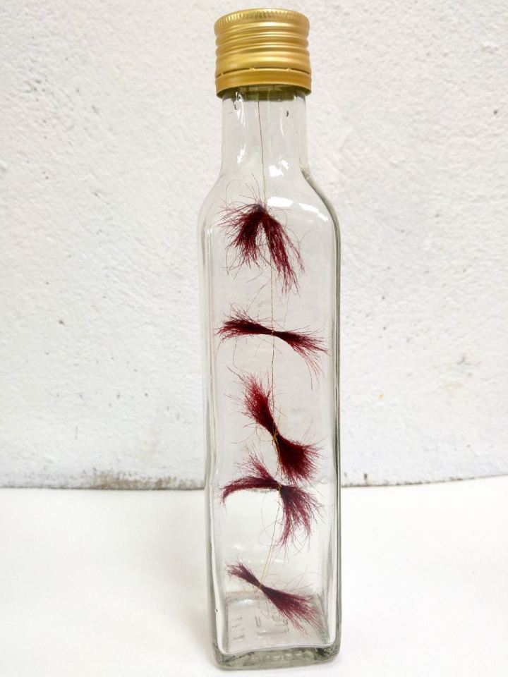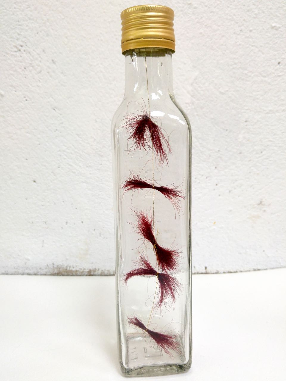 Historically, separated lovers would send each other a lock of their hair in an envelope, as a sign of their love. Today I send my own hair as a message in a bottle to the world. Besides carrying my personal essence, they carry the essence of love and connection.