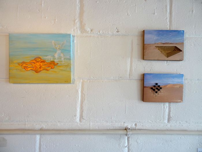 IRust_smallworks ← Previous Next → Mixed Media works: Fata Morgana (Painting), Open Pit Near You (Recycled Cardboard & Photograph), Mini SubRosa (Recycled Cardboard, Photograph, Deco Pins & Acrylic)