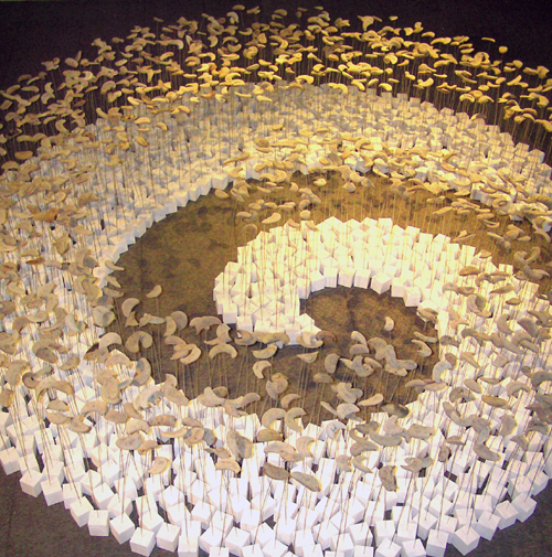 The Camelthorn Code ← Previous Next → The Camelthorn Code Dimensions variable (about 400 x 500 x 50cm Medium: Camel Thorn Pods, wire, wood, PVA paint, pencil and ballpoint pen