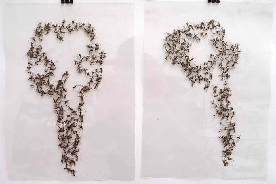 Mozzi Skulls. Mosquitoes and lamination foil.29x21cm