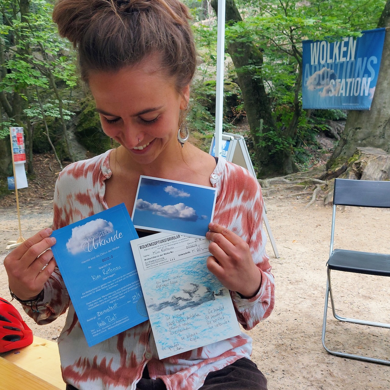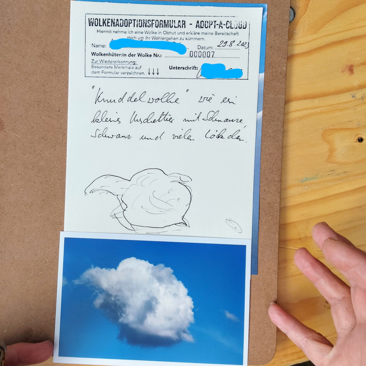 Jede:r Wolkenhüter:in erhielt ein analoges Foto der adoptierten Wolke, eine Urkunde, Hinweise zur Pflege sowie eine individuelle Erzählung aus Rusts Wolkenorakel.