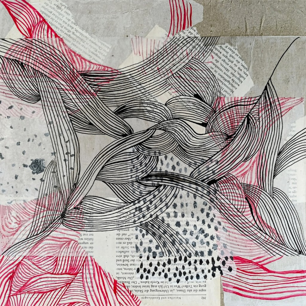 Das Miteinander, Nebeneinander, Dazwischensein und manchmal auch der benötigte Abstand während dieser intensiven gemeinsamen Tage fließt zeichnend in meine Arbeiten. Manches wird diffus, anderes klarer. Spiegel einer produktiven, kreativen Zeit.