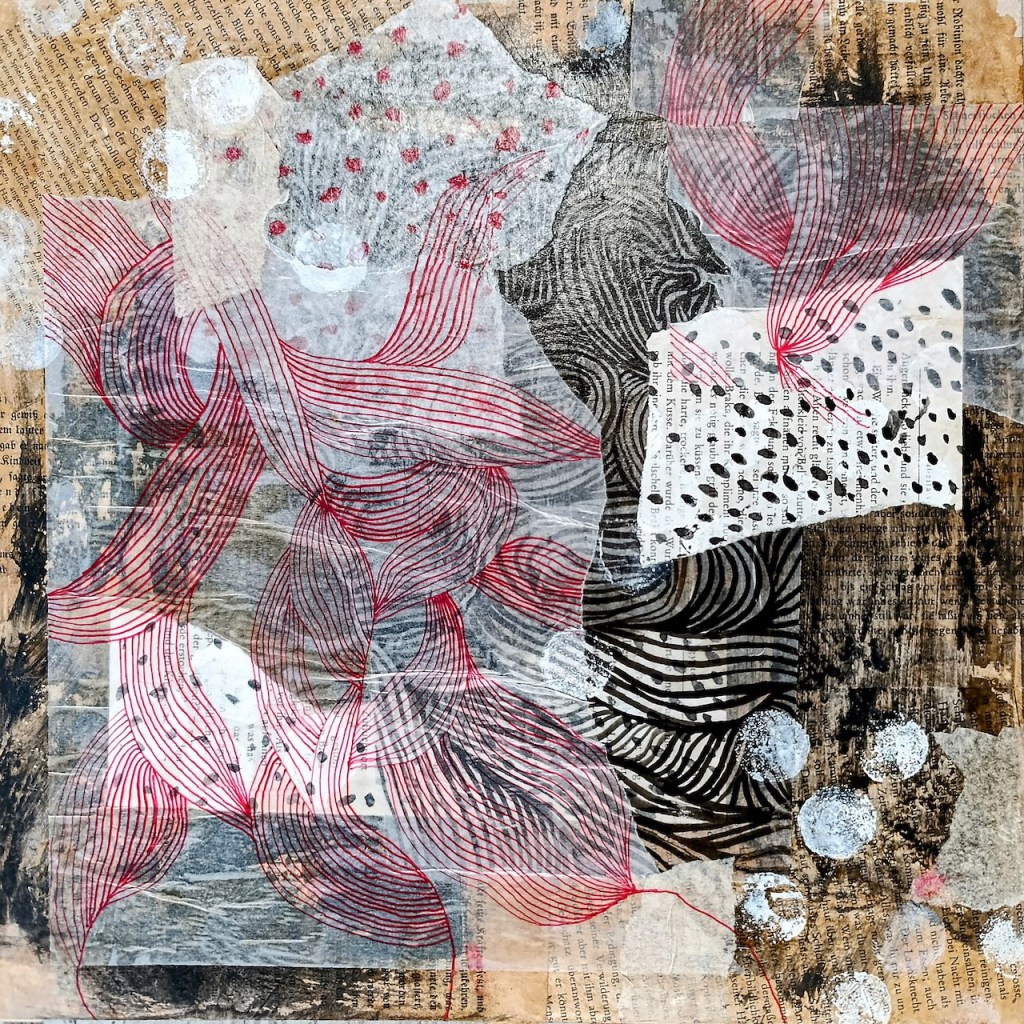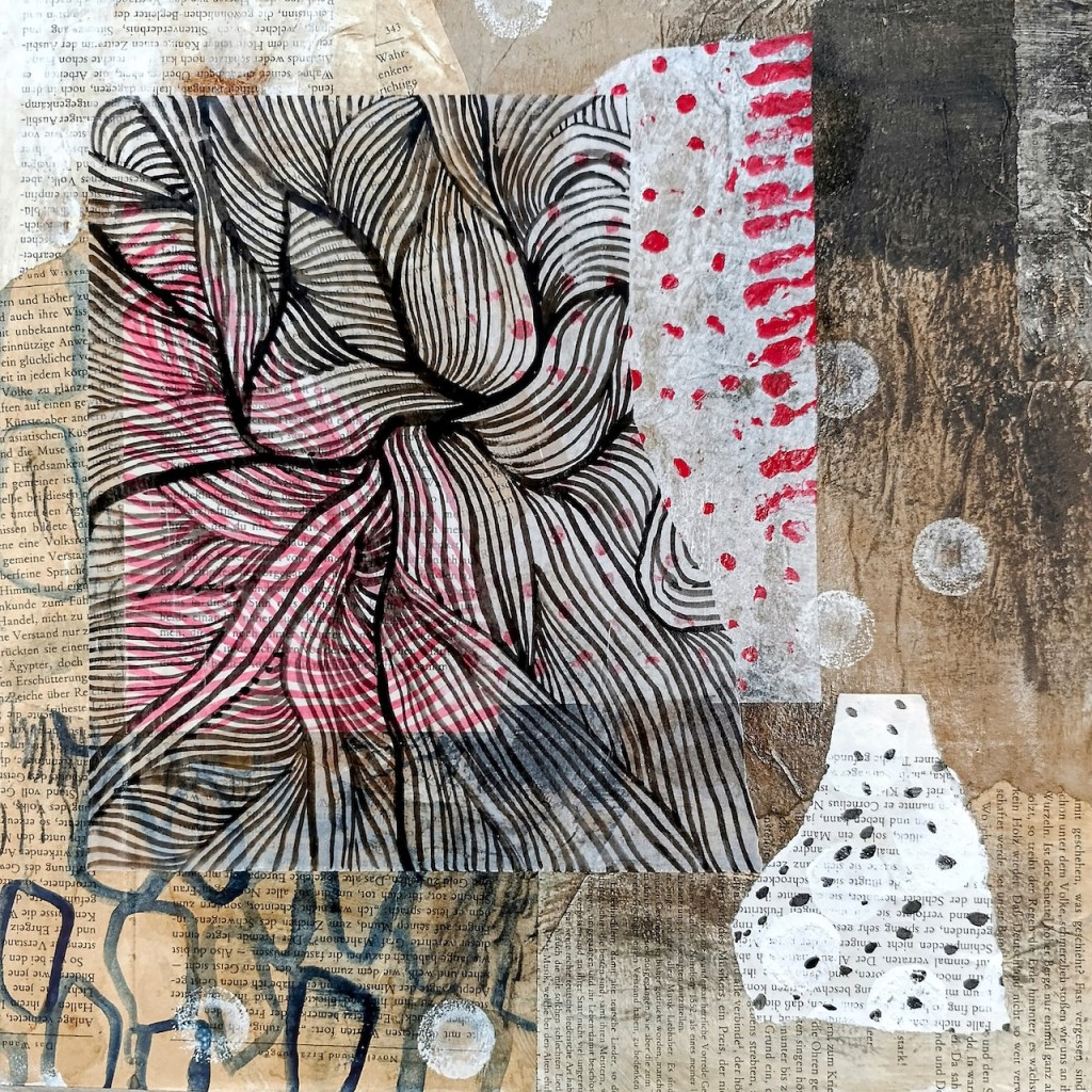 Lebenslinien (Lifelines), Collage on wood panels, 30x30cm each