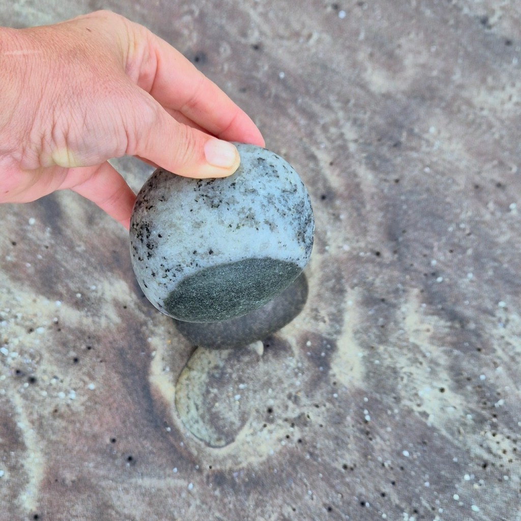 The images emerge in-the-moment during these encounters rather than from pre-planned compositions. Working exclusively with a smartphone allows an immediate, bodily mode of production: the stone is held in one hand while the photograph is taken with the other. Gesture and image occur almost simultaneously.