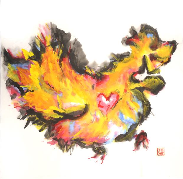 IR_dragon looking for love (heartbeat) ← Previous Next → Dragon Looking for Love (Heartbeat) Artist: Imke Rust © Medium: Chinese ink and watercolour on rice paper Size: 66 x 66cm Beijing, 2008