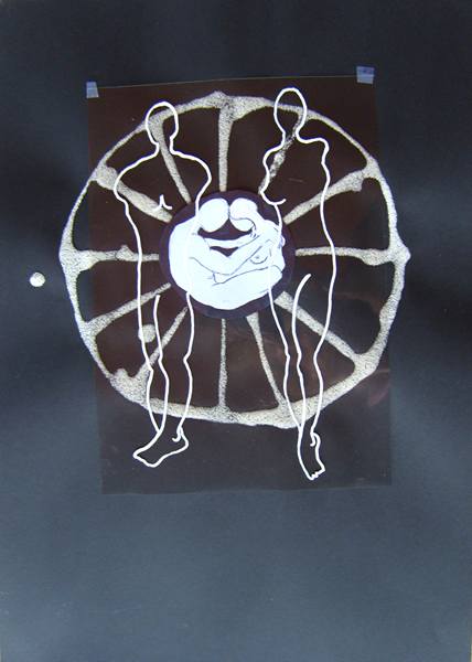 Wheel ← Previous by Imke Rust (c) Medium: Maize flour, paper, acetate, tippex and thread on black paper Size: 36x36cm