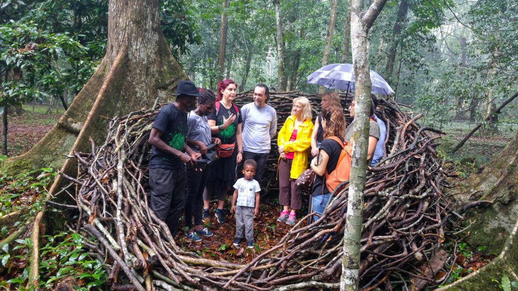 The artists were invited to create new artworks in the Parc National du Banco, one of the last primary rainforest in the country. The works should raise awareness about the danger of deforestation and the necessity to protect the environment. Banco is unique, as it is a protected area of about 3500 hectare in the middle of the coastal city of Abidjan.