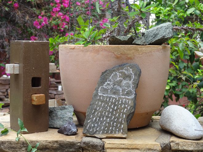 Lastly, I wanted to implement another ‘new’ aspect into this rainmaker. The idea of making an offering… We sprinkled the rock and rain drawings with actual water. I have always thought that adding water to my rainmaker experiments would be another magnet in the sense of ‘like attracts like’, but I realised that there might be another aspect that I have overlooked.
