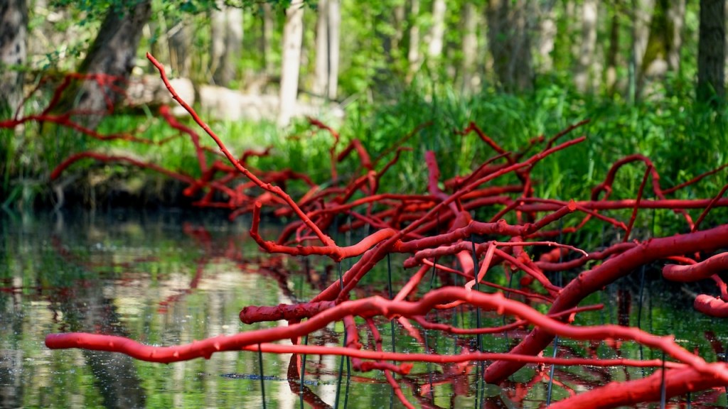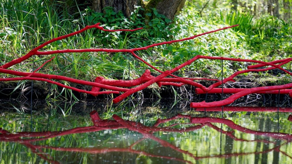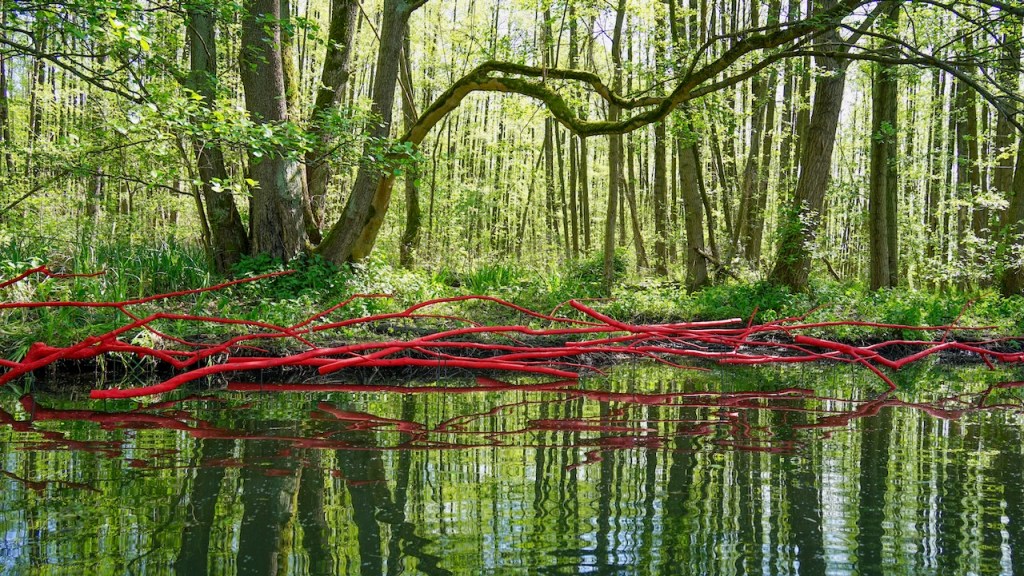 Im Spreewald fließen die Äste am Wasser. Montiert auf dünnen Eisenstangen strömen sie etwa einen halben Meter über der Boden- oder Wasseroberfläche entlang.