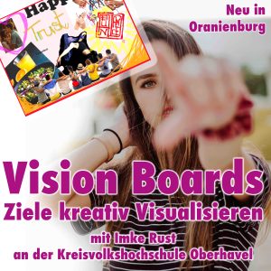 In diesem Workshop erfährst du was Vision Boards sind und wie sie funktionieren. Jeder erstellt sein eigenes Vision Board: eine besondere Art der Collage mit ausgeschnittenen Bildern aus Zeitschriften, Skizzen, Farben, Texten, Affirmationen und Zielen.