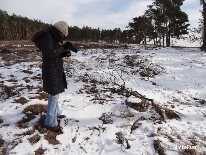 After a short introduction to the ideas and possibilities of land or nature art, we set out on the short walk to the forest. The area offers a wide variety of different backgrounds and possibilities, ideal for each to find their best mode of expression. There is a small open birch forest, a dense coniferous forest, a meadow and the Havel river…